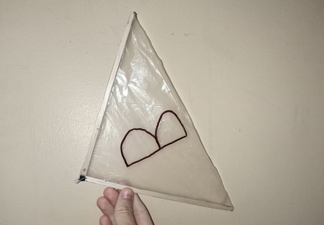 用塑料剪出与木框大小相同的三角形。