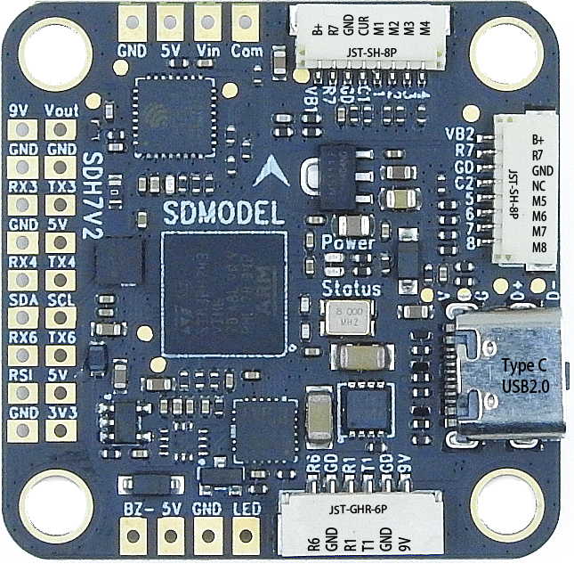 SDMODELH7V2 最多支持 8 路 PWM 输出。输出通过两个 JST-SH 连接器提供。所有 8 个输出均支持 DShOT 以及所有 PWM 类型。输出 1-4 还支持双向 DSHOT。