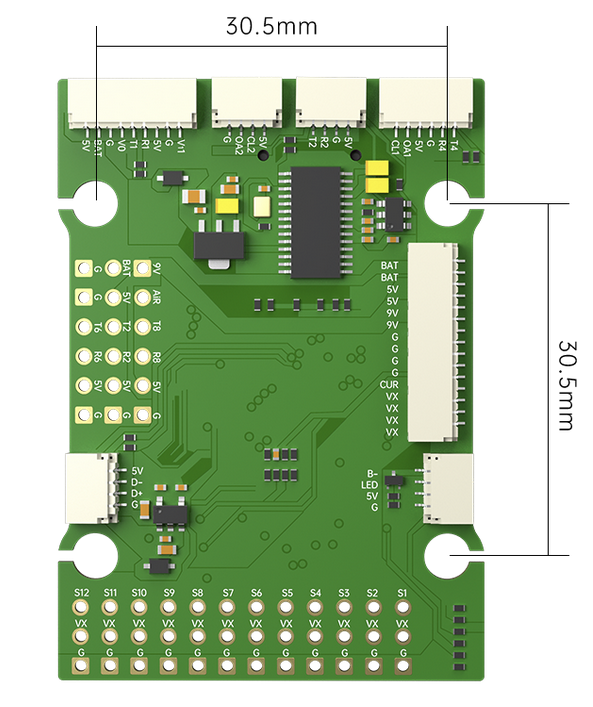 电路板内置电压传感器和电流传感器。电压传感器最多可处理 8S 锂聚合物电池。