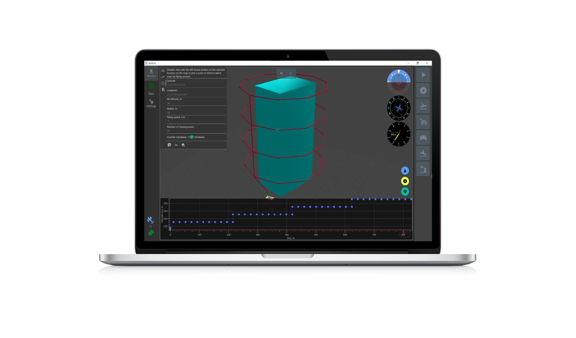 地面站通常是一个软件应用程序,运行在地面电脑、手机或发射机上,通过以下方式与无人机通信 无线遥测 或 USB 电缆。它可显示无人机性能和位置的实时数据,并可充当 "虚拟驾驶舱",显示许多与驾驶真实飞机相同的仪器。全球控制系统还可用于控制飞行中的无人机,上传新的任务指令并设置参数。它通常还用于监控无人机摄像头的实时视频流。