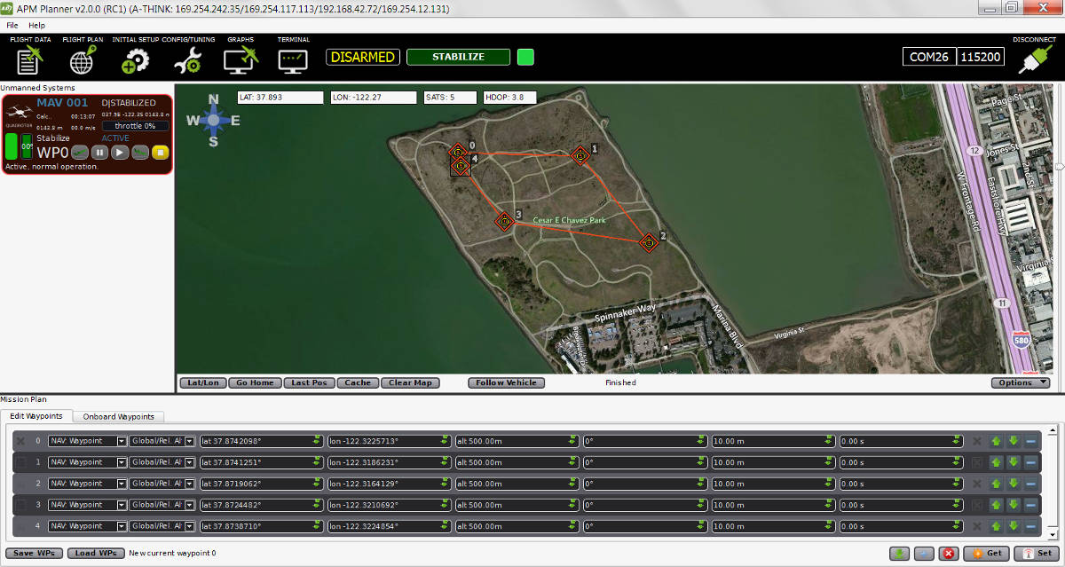 至少有十个不同的地面控制站。桌面上有 Mission Planner地面站, APM Planner 2, MAVProxy, QGroundControl, 乌干达统计局和 标志.平板电脑/智能手机有 QGroundControl, 塔楼 (DroidPlanner 3)、 MAVPilot, AndroPilot 和 侧领航 可用于与 ArduPilot 通信。