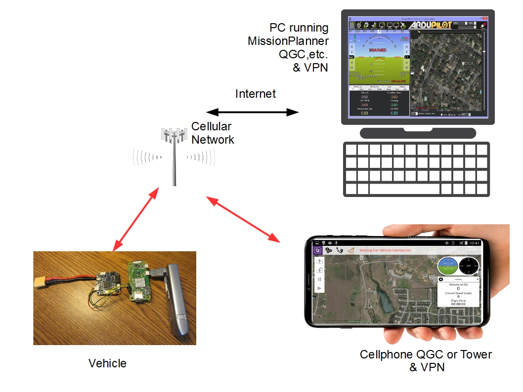 无人机广播 它允许通过 3G/4G 蜂窝网络传输 MAVLink 遥测数据,传输距离几乎不受限制。