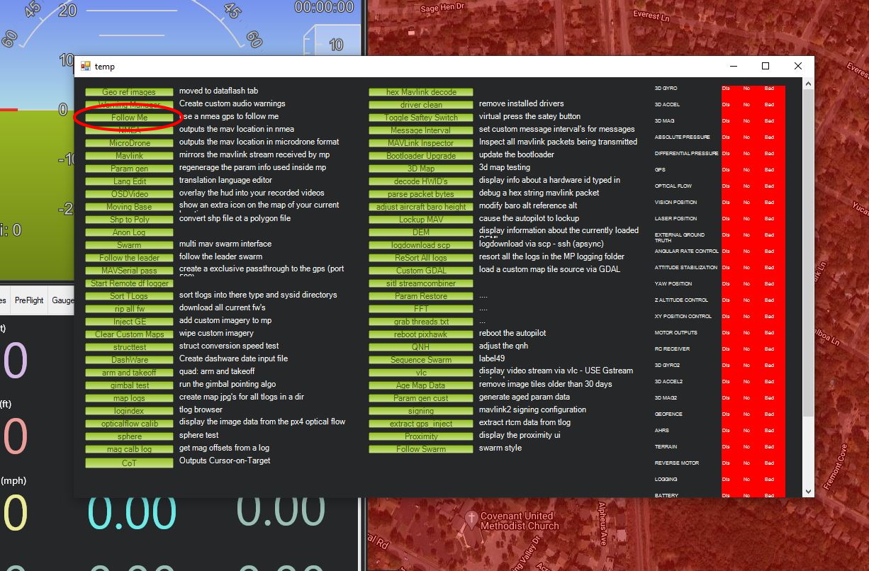 在Mission Planner地面站的 "飞行数据 "屏幕中,尝试右键单击附近的一个点,然后选择 "飞往此处"。如果成功了,您就可以尝试 "目标跟随Follow me "模式了。