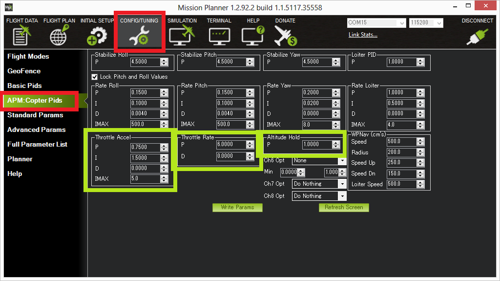 查看高度保持性能的最佳方法是 下载数据闪存日志 然后用Mission Planner地面站打开它,并绘制气压计高度、期望高度和基于惯性导航的高度估计值。根据版本和板卡的不同,这些数据的列数也略有不同。
