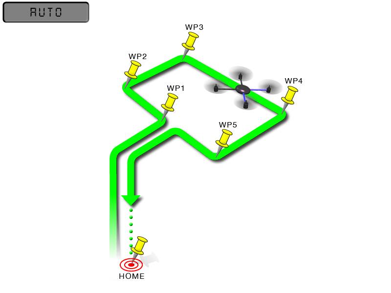 在任何时候,飞行员都可以通过将飞行模式开关返回到另一种飞行模式(如稳定或着陆)来重新夺回(飞行)控制器的控制权。如果飞行员再次切换到 "自动 "模式,飞行任务将从最后一条指令开始恢复。