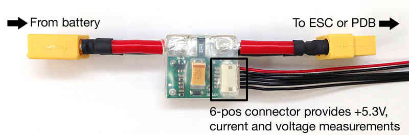 许多(飞行)控制器都配有模拟电源模块,可为(飞行)控制器提供稳定的电源,并支持测量电池电压和电流消耗。