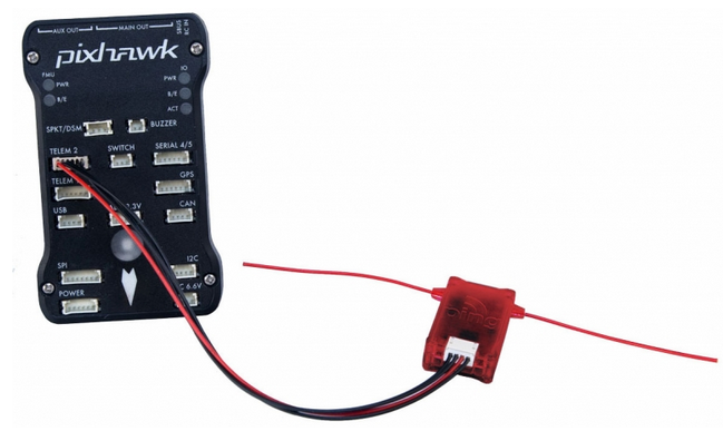 ADSB 接收器应连接到(飞行)控制器的串行端口。接收器的安装应使天线垂直。