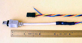 要将 CHDK 设置与 ArduPilot 集成,您需要一根 CHDK 电缆(如图所示),用于连接(飞行)控制器的输出信号引脚和摄像头的 USB 端口。我们使用 Gentles 的 gentWIRE-USB2 电缆.(敬请期待 3DR CHDK 电缆)。
