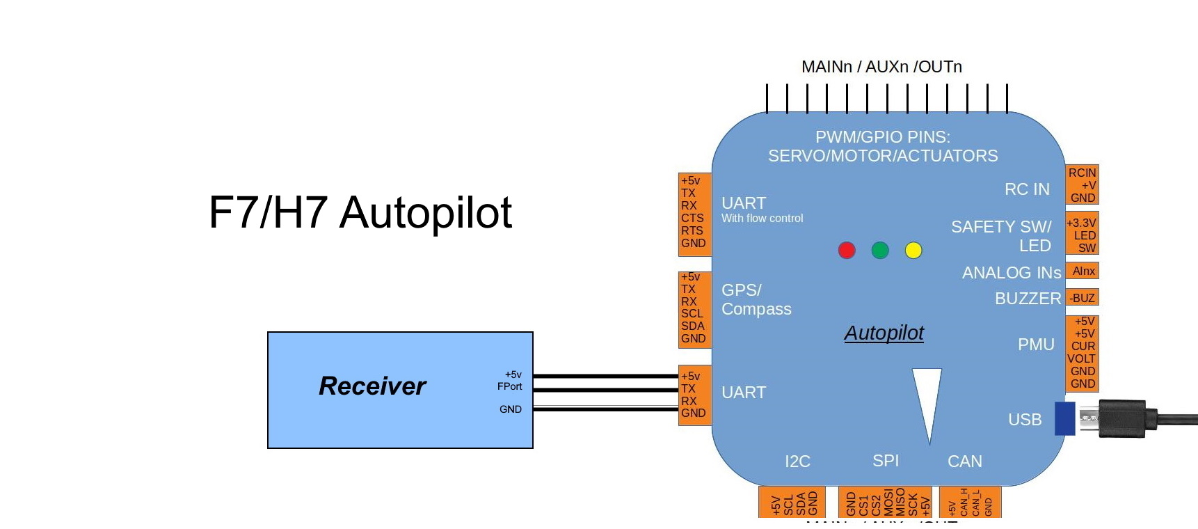 F7/H7 板可以将 FPort 连接到 UART 的 RX 引脚,而不是如上图所示的 TX 引脚,并使用 UART 的 SWAP 选项。F4 板不具备这种 SWAP 功能。 FPort 接收器 了解更多信息。