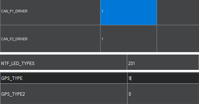 在Mission Planner地面站的所有参数表中设置以下参数,并在写入后重新启动