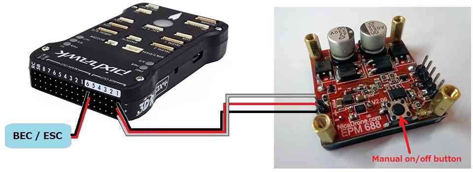 EPM 与 Pixhawk 的连接方式与 Pixhawk 的连接方式相同。 伺服器.