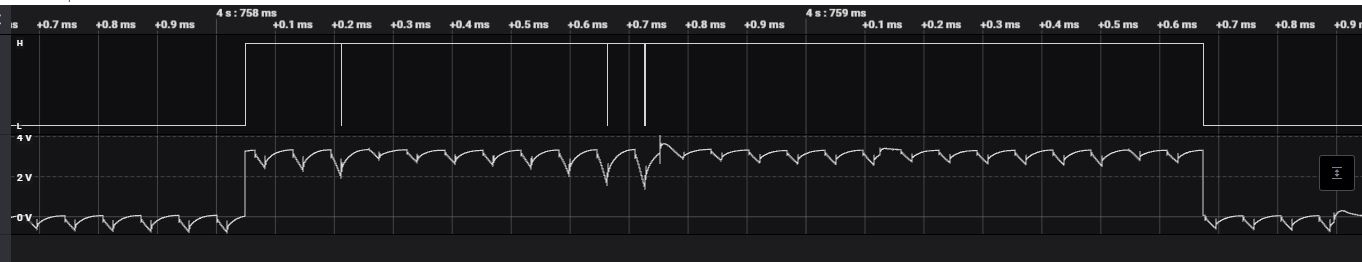 展开发生关机的部分,可以看到模拟信号最终变得足够嘈杂,以至于其数字逻辑电平被错误解读。