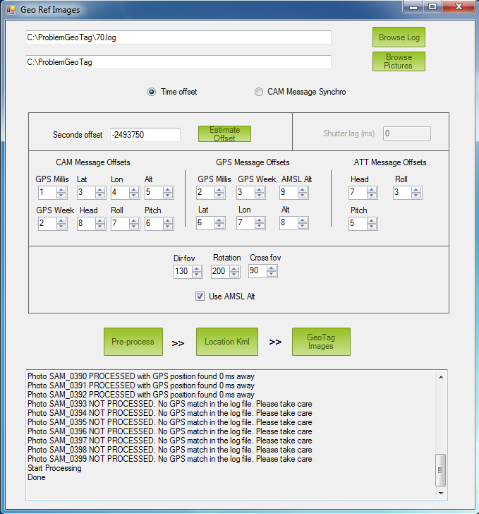 该工具将计算(如上一节所述)第一张图片与日志中第一个 GPS 时间之间的时间差。