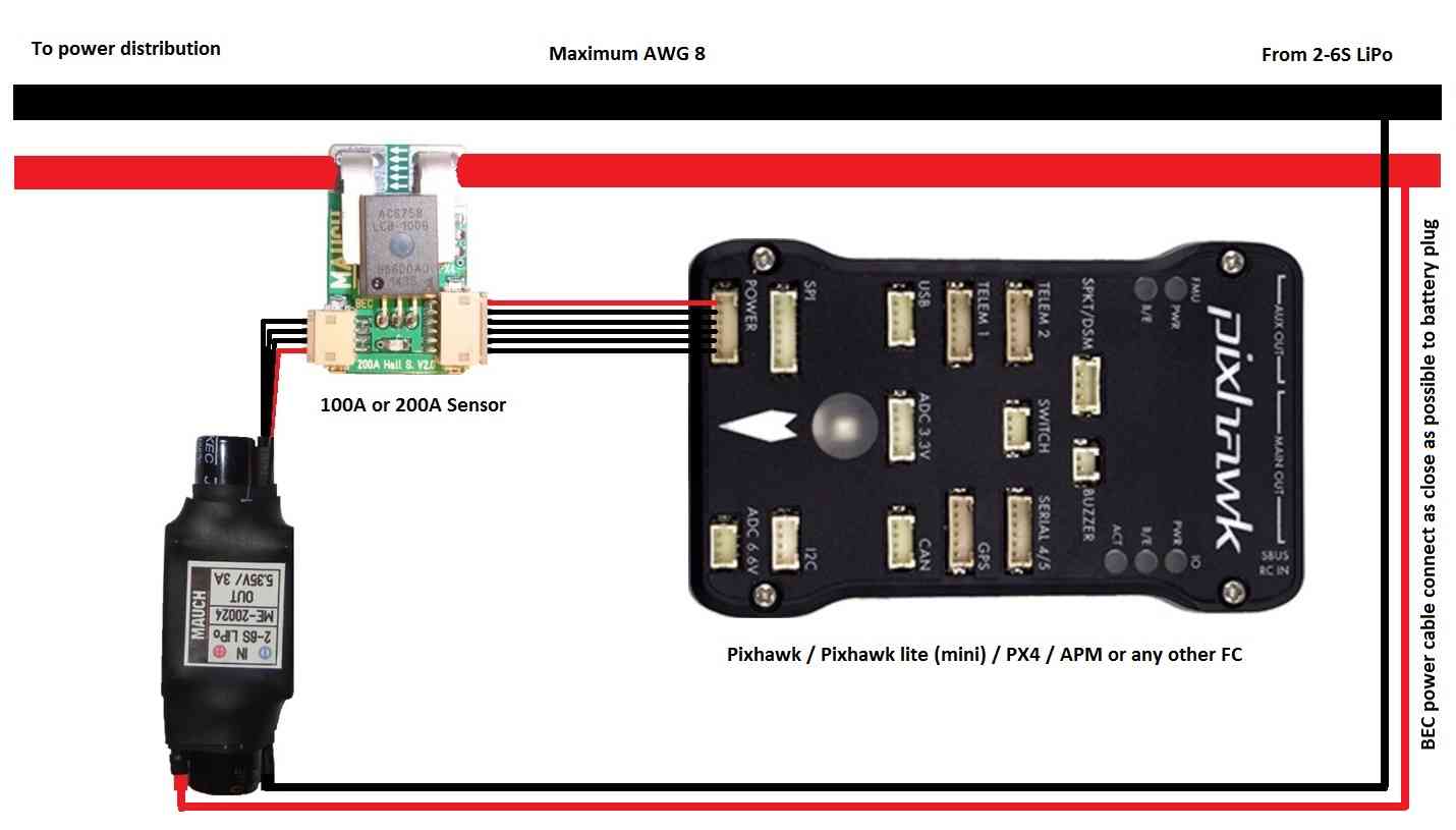 有关霍尔电流传感器和这些 PM 的更多信息,请参阅本博文: 安全第一:用于 Pixhawk / APM 的带 BEC 的 100A & 200A 霍尔传感器.