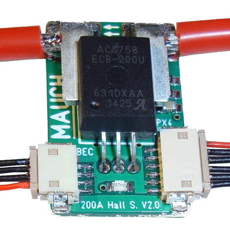 毛奇 有许多 PM,与 Pixhawk、APM、Pixhawk lite、AUAV-X2、DroTek 和 CUAV Pixhack 兼容。HS-100-V2 和 HS-200-V2 传感器板的连续电流分别为 100A 和 200A(无时间限制)。最大突发电流为 1200A@25'C 和 800A@85'C 1 秒钟。