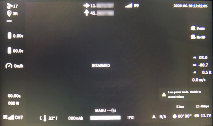 DJI 硬件不支持 ArduPilot 的飞行模式!此项目通常为空白,只有在故障安全模式下才显示 !FS!!
