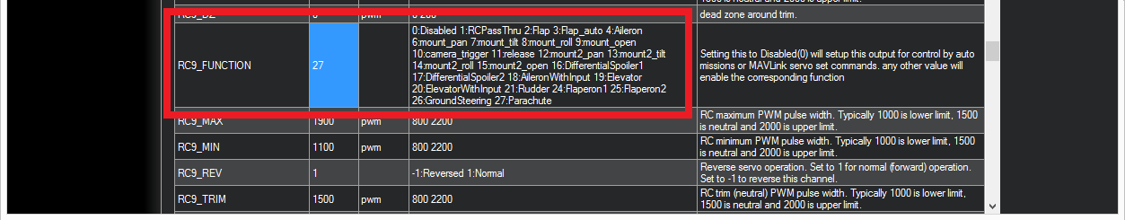 CHUTE_SERVO_ON 应设置为释放降落伞所需的伺服器位置