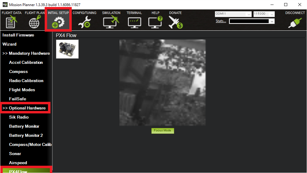 打开初始设置> 可选硬件> PX4Flow 屏幕