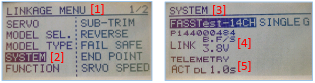 要使用该功能,需要 "FASSTest-14CH "协议 必须在发射机中启用。