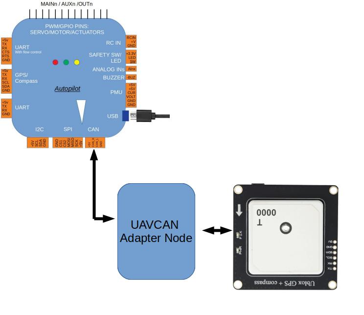 有关设置(飞行)控制器和通用适配器节点以启用这些功能(假设节点支持这些功能)的详细说明,请参阅以下网站 DroneCAN 适配器设置.
