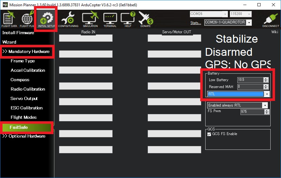 使用Mission Planner地面站进行设置¶