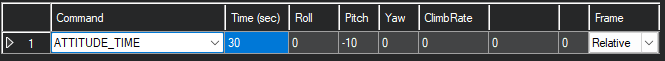 飞行器在指定时间内保持指定的滚转、前平移/俯仰、偏航角和爬升率。执行该命令时不需要 GPS