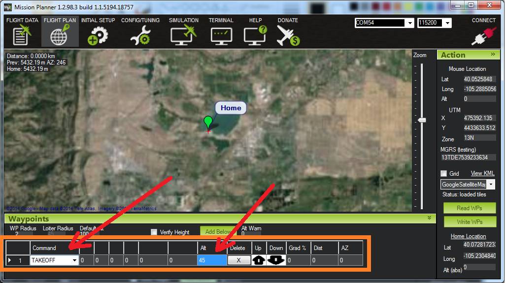 下面的每条指令都是 "导航 "指令或 "执行 "指令。导航 "命令(如 "起飞 "和 "航点")会影响飞行器的位置,而 "执行 "命令(如 "执行-设置-伺服 "和 "执行-凸轮-三角定位")则用于辅助功能,不会影响飞行器的位置。