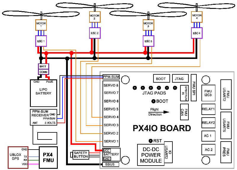 本文概述了 PX4FMU 和 PX4IO Board Copter 接线/安装。