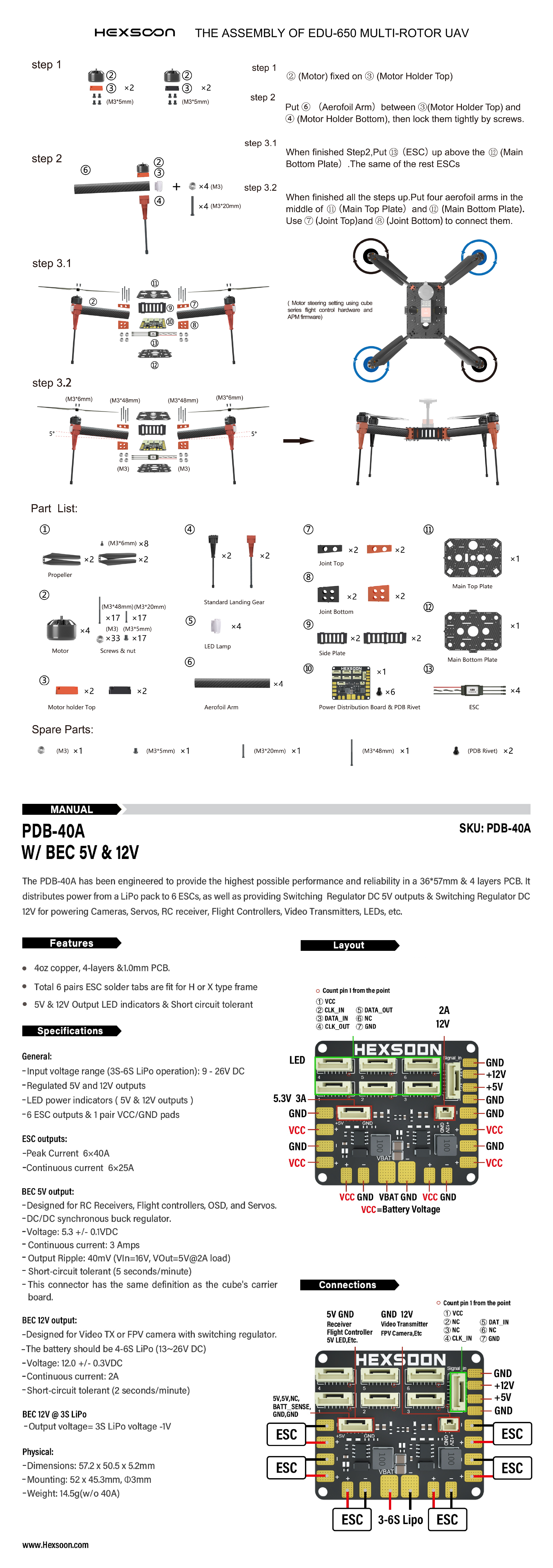 Hexsoon EDU-650(原名 TD-650)是一个碳纤维框架,包括电机、PDB、电调和螺旋桨。