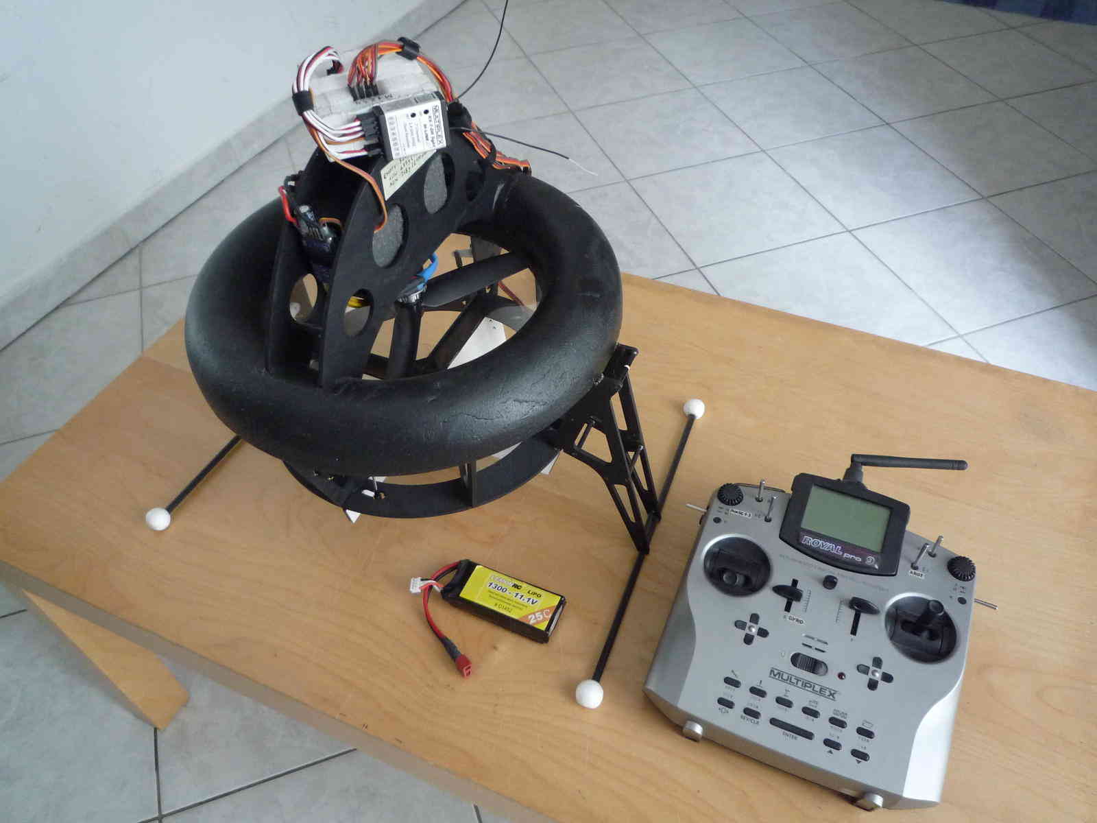 下面的飞行器有两个背靠背安装的发动机,一个螺旋桨在上方,另一个在下方,并配有适当的支撑杆。