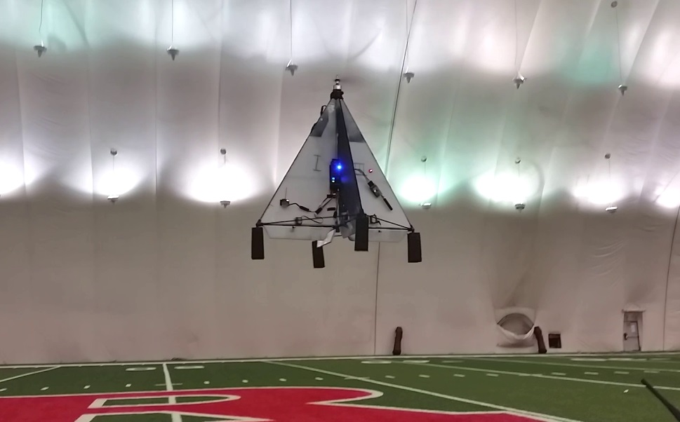 有两个反向旋转的电机和至少两个独立的襟翼(可使用 4 个单独的舵机/襟翼,但飞行器相对两侧的鳍会一起运动)