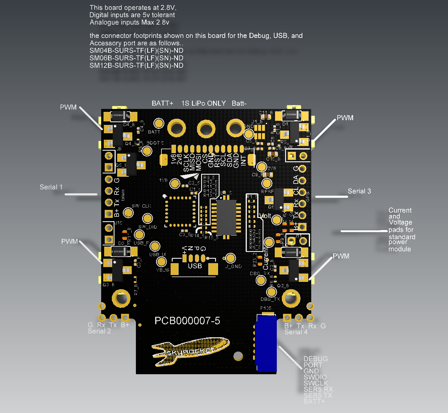 一些 SkyRocket 无人机使用 ArduPilot 作为飞行控制软件。本页为高级用户和潜在开发人员提供有关这些 RTF 无人机的详细信息。