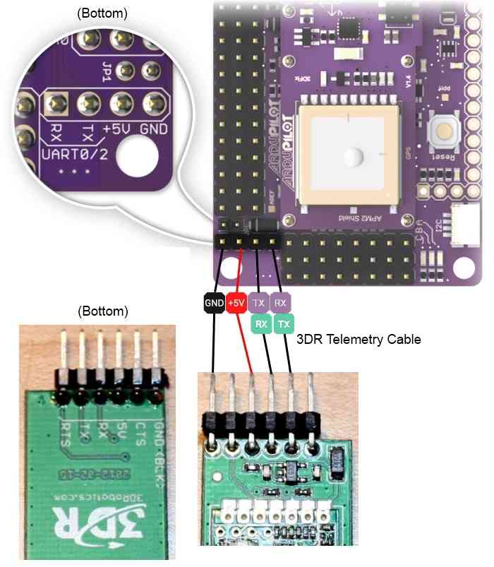 在 APM 2.5 上,使用专用遥测端口和随附电缆,如图所示: