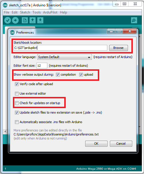 归档:使用 Arduino 在 Windows 上为 APM2.x 构建 ArduPilot¶