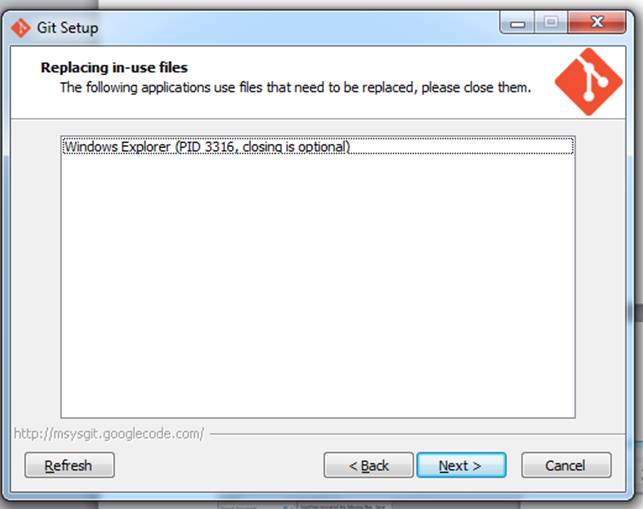 点击 下一页 中的 替换使用中的文件屏幕然后等待 Git 加载完毕