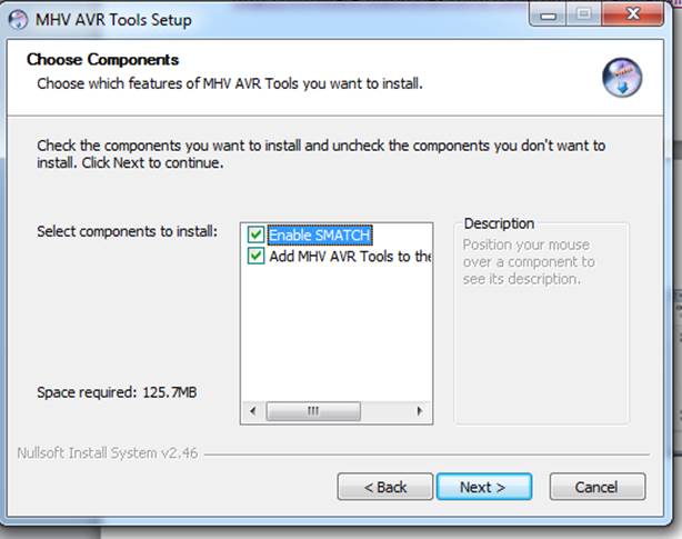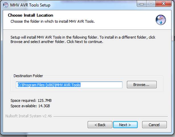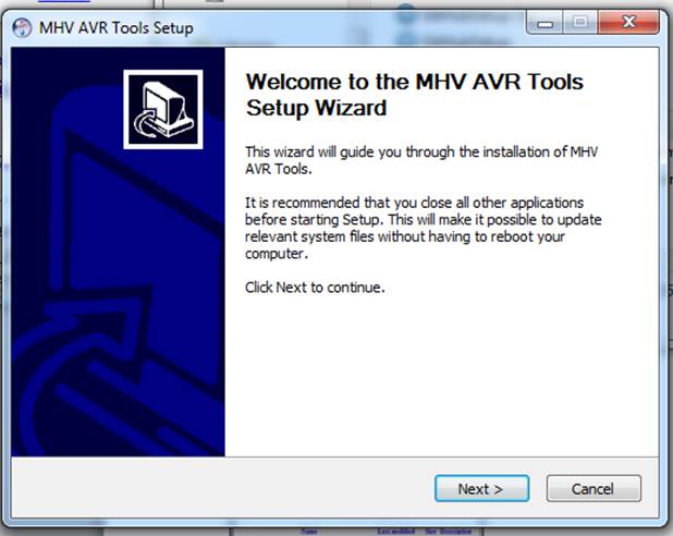选择 下一页 按钮,然后选择 安装 按钮,用于 MHV AVR 工具