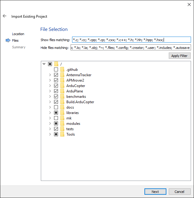 CD ArduPlane 目录 *.cpp *.hpp *.ipp *.c *.h /b /s >>; ..\ArduPilot.files