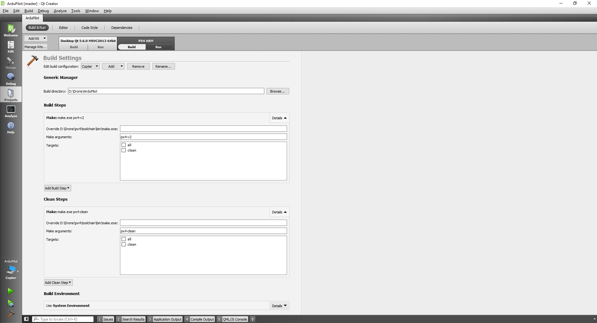 我们会尽量确保 Qt Creator 在运行时包含构建 ArduPilot 项目所需的所有环境变量。