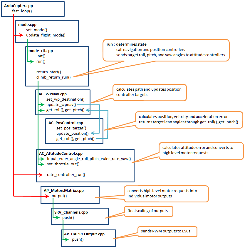作为参考,下图提供了 Copter RTL 模式的高层代码流视图