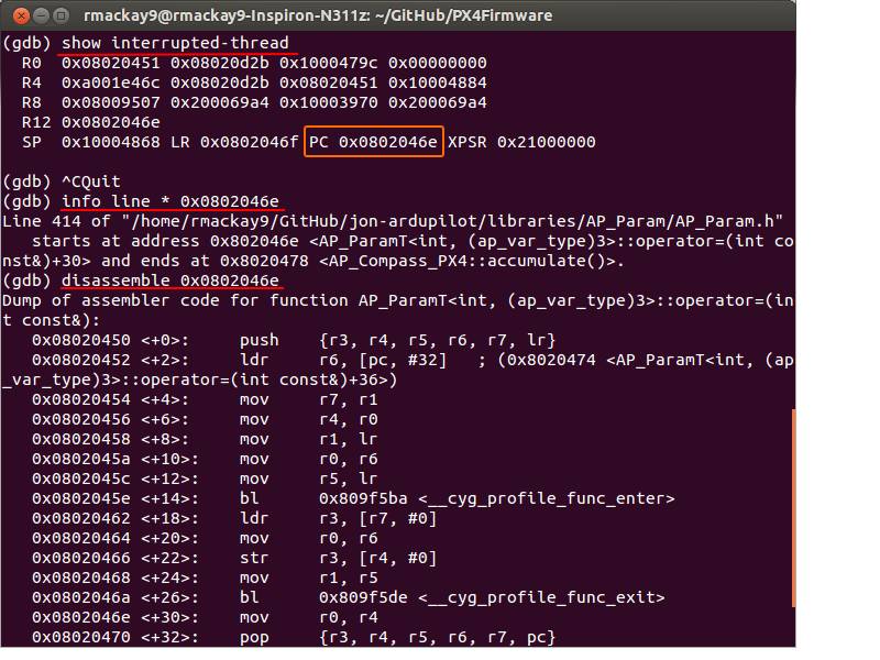 GDB(GNU 调试器)"允许您查看另一个程序执行时的 "内部 "情况,或另一个程序崩溃时的情况",这在使用 STM32 调查非常底层的故障时非常有用(不能用于 APM1/APM2)