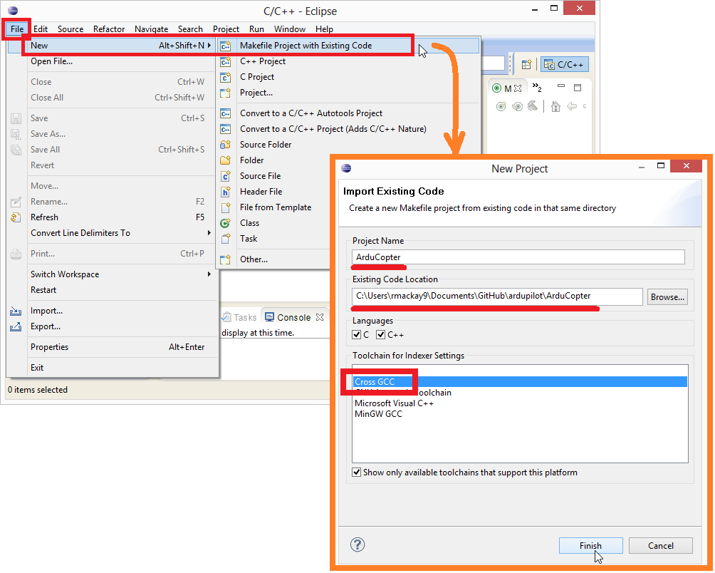 本文介绍如何设置 Eclipse 以编辑和构建 Pixhawk/STM32 板的二进制文件。无法在 Windows 上为其他板构建二进制文件。