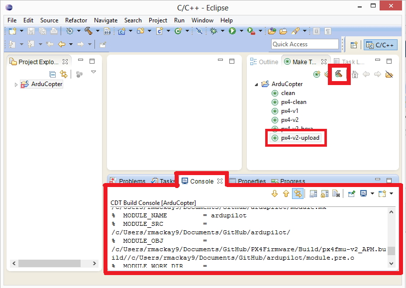 "这款" PX4 工具链 包括为 ArduPilot 开发设置的 Eclipse 预配置版本。