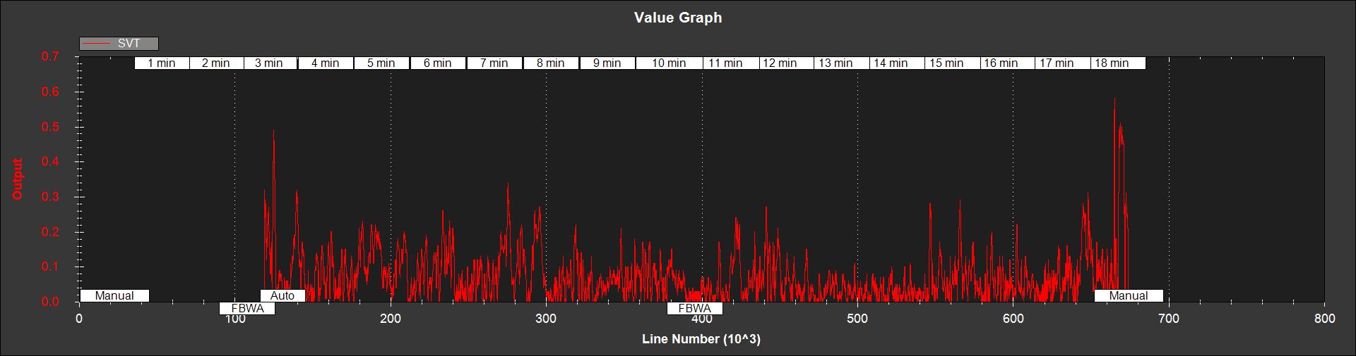 可以清楚地看到,每当节流阀升高时,都会出现超过 1 的大峰值,而在节流阀运行期间也会出现大数值。在这个例子中,建议采取措施减少罗盘干扰。