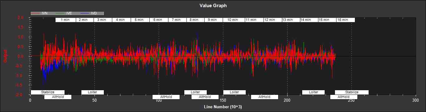 IVN,IVE,IVD - 北、东、南 GPS 速度测量的创新(米/秒)。这是衡量导航滤波器健康状况的重要指标。如果您的 IMU 和 GPS 数据质量很好,它们的误差会很小,约为零,如下图所示: