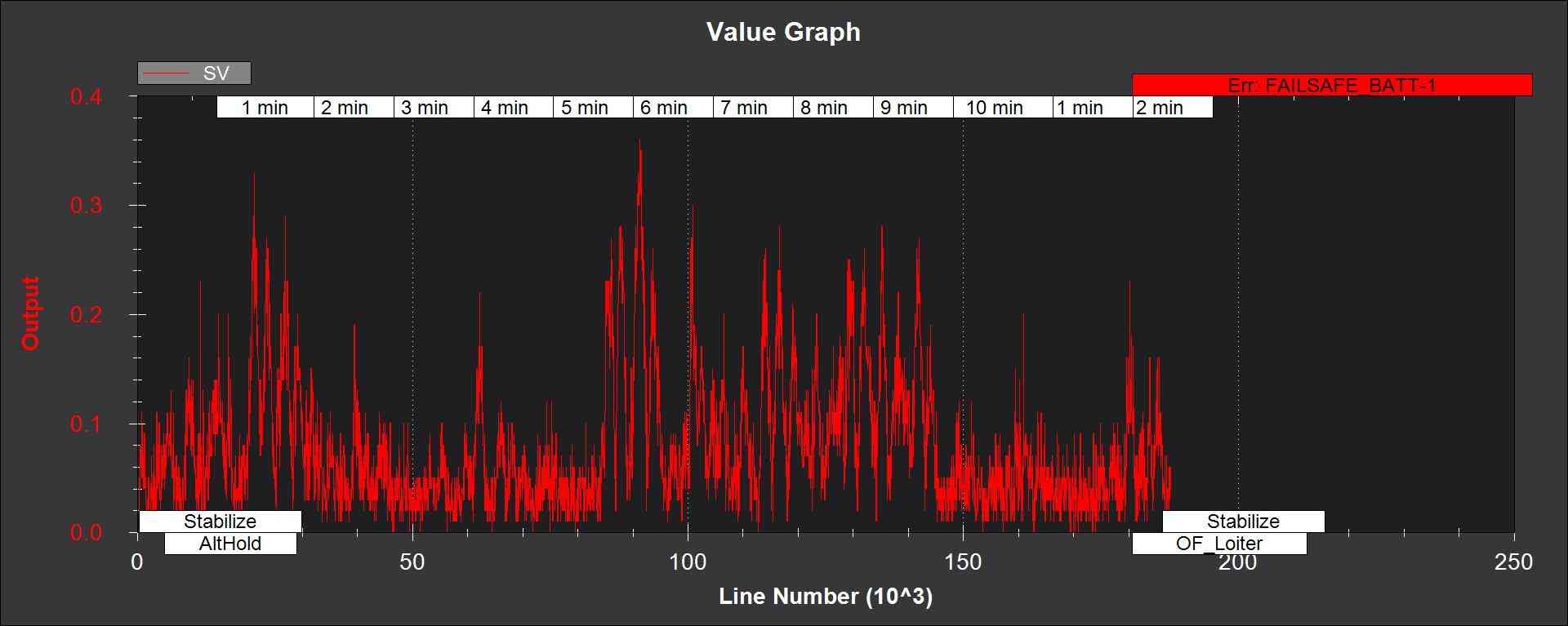SV - 全球定位系统综合速度不一致性与 EKF_VEL_GATE 参数。对于 GPS 数据良好的飞行,该值偶尔会超过 1/2,但绝对不会超过 1。在传感器数据良好的情况下,这种情况绝对不会发生。下图显示