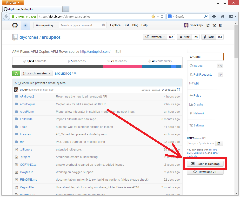 打开 ArduPilot 软件仓库 在您最喜欢的网络浏览器中