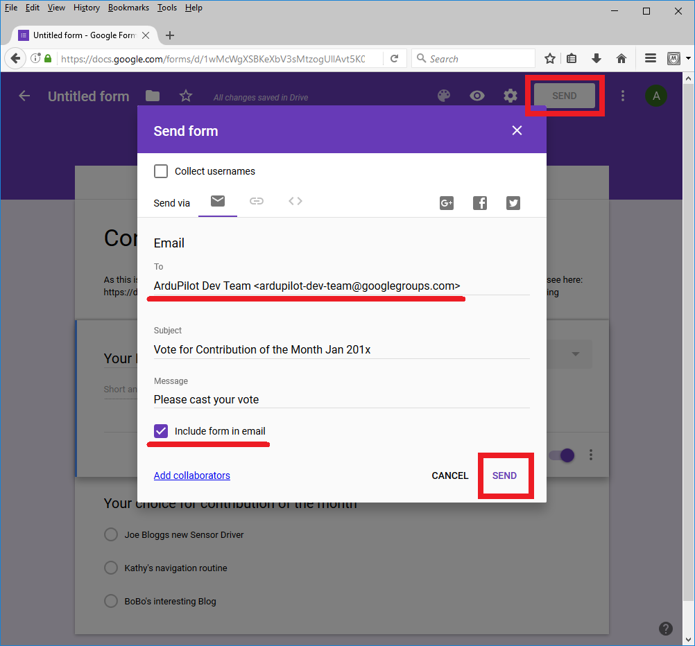 以允许其他人查看回复(包括 ardupilot.发展@电子邮件.网),点击 "合作者 "链接,并在 "邀请人 "字段中添加他们的电子邮件