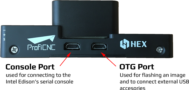 如下图所示,使用 USB 电缆将电脑连接到 Cube。连接到 Cube 的 USB 电缆(如下图所示的黑色电缆)提供电源。连接到载板的两条 USB 电缆(如下图所示的白色电缆)可将图像闪烁到 Edison 上。如果可能,请使用 Cube 附带的扁平 USB 电缆连接 "OTG 端口闪烁",因为它能提供最可靠的连接。