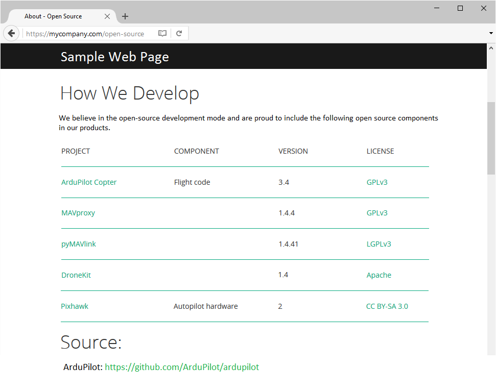 告知客户软件是开源的,并在产品中提供实际源代码,或提供源代码的链接(见下文示例)。