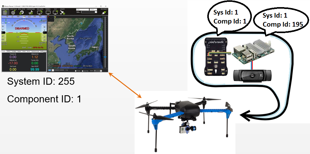 正如 MAVLink 基础知识 页面 MAVLink 网络由以下部分组成 系统 (载具、全球控制系 统、天线跟踪器等),它们本身由 部件 (飞行控制器、摄像系统等)。